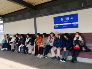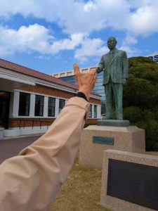 京阪西三荘駅で時間調整した後、パナソニックミュージアムの前で記念写真。