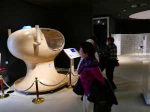 続いてモノづくりイズム館へ。ここは家電誕生から私たちの若かりし頃に出会った商品が展示されており、みなさん「これ覚えてる!」、「これ持ってた!」などあちこちに想いでたっぷりの言葉が。また55年前の大阪万博のタイムカプセルや人間洗濯機の前ではとても懐かしそう!