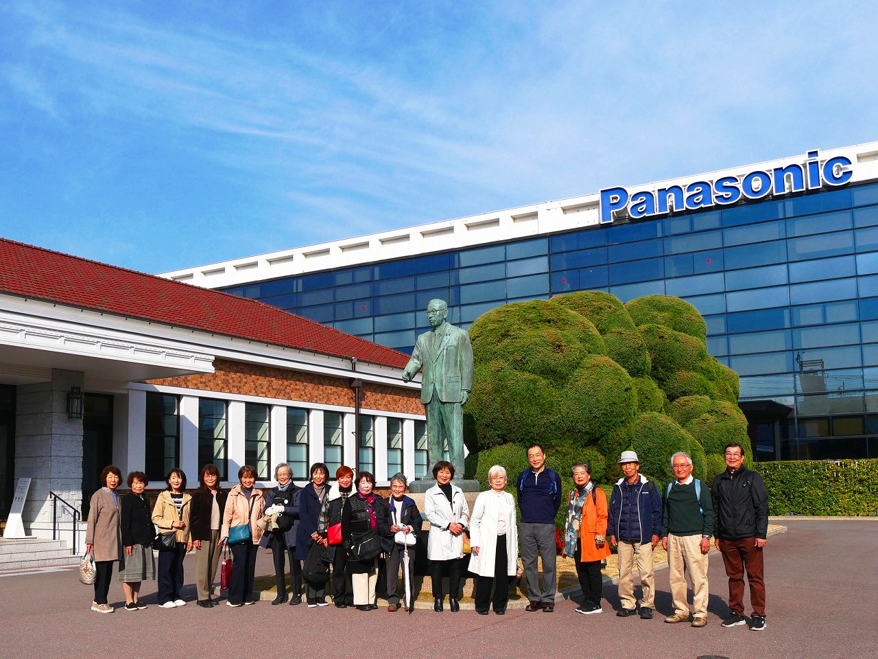 京阪西三荘駅で時間調整した後、パナソニックミュージアムの前で記念写真。